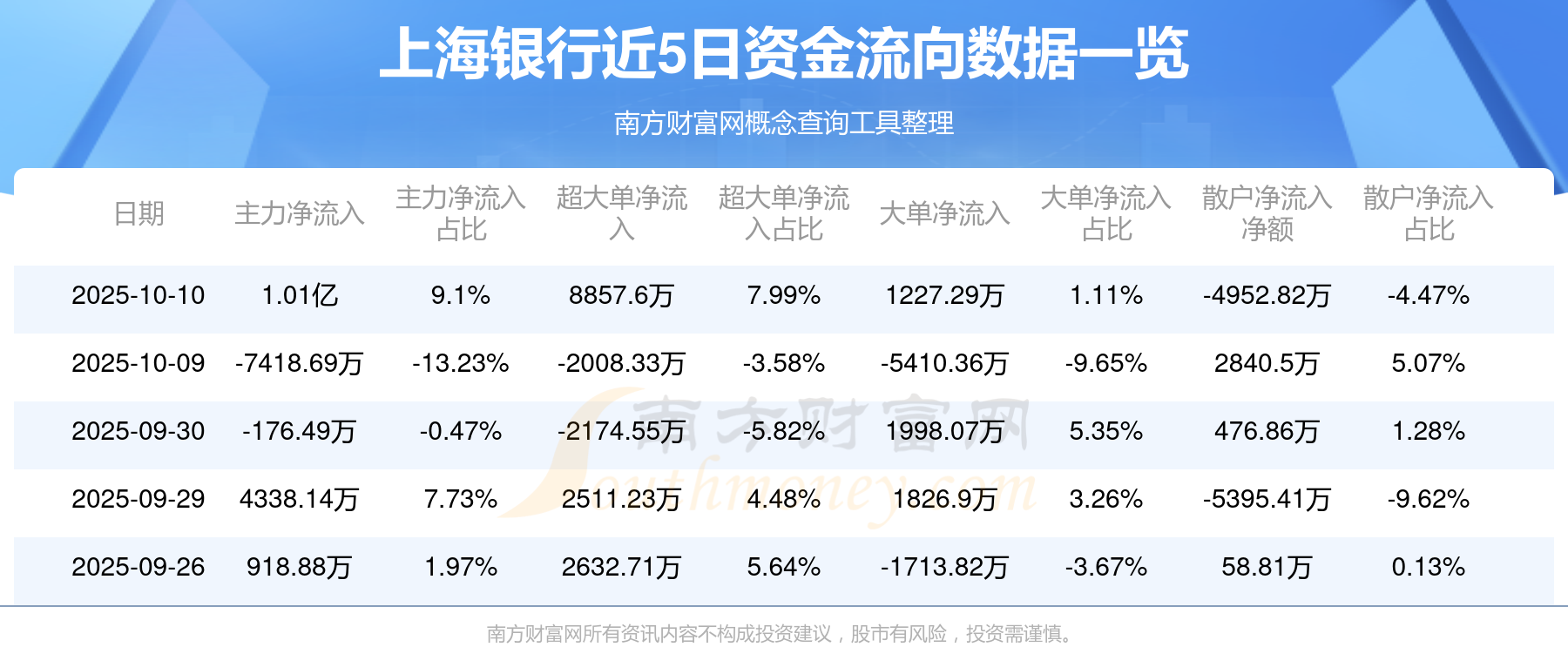 10月10日該股主力凈流入1.01億元,超大單凈流入8857.6萬元,大單凈流入1227.29萬元,中單凈流出5132.07萬元,散戶凈流出4952.82萬元。