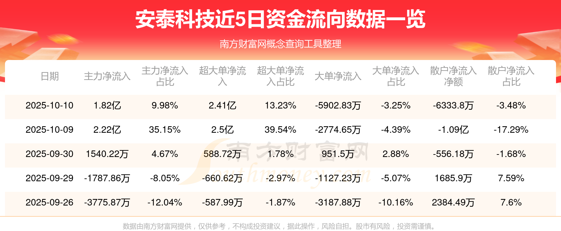 資金流向數(shù)據(jù)方面,10月10日主力資金凈流流入1.82億元,超大單資金凈流入2.41億元,大單資金凈流出5902.83萬元,散戶資金凈流出6333.8萬元。