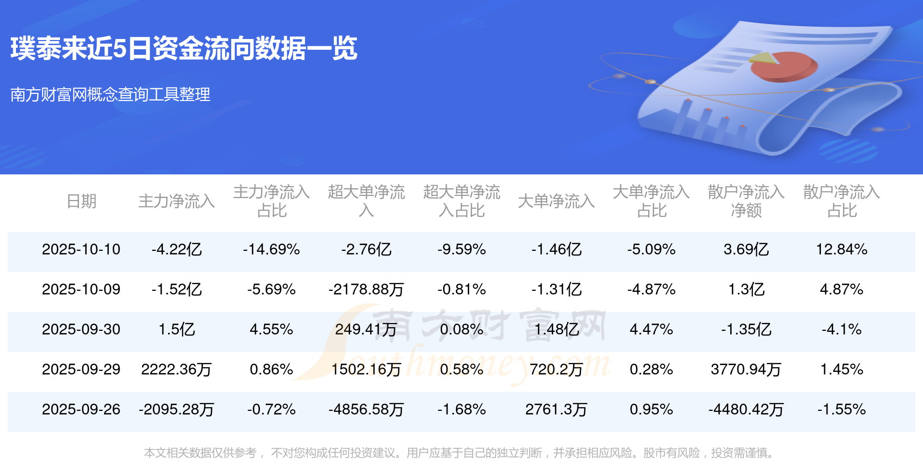 資金流向數(shù)據(jù)方面,10月10日主力資金凈流流出4.22億元,超大單資金凈流出2.76億元,大單資金凈流出1.46億元,散戶資金凈流入3.69億元。