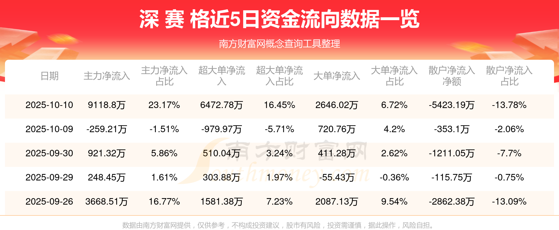 10月10日該股主力資金凈流入9118.8萬(wàn)元,超大單資金凈流入6472.78萬(wàn)元,大單資金凈流入2646.02萬(wàn)元,中單資金凈流出3695.61萬(wàn)元,散戶資金凈流出5423.19萬(wàn)元。