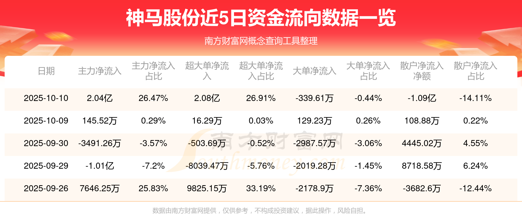 10月10日消息,神馬股份10月10日主力凈流入2.04億元,超大單凈流入2.08億元,大單凈流出339.61萬元,散戶凈流出1.09億元。