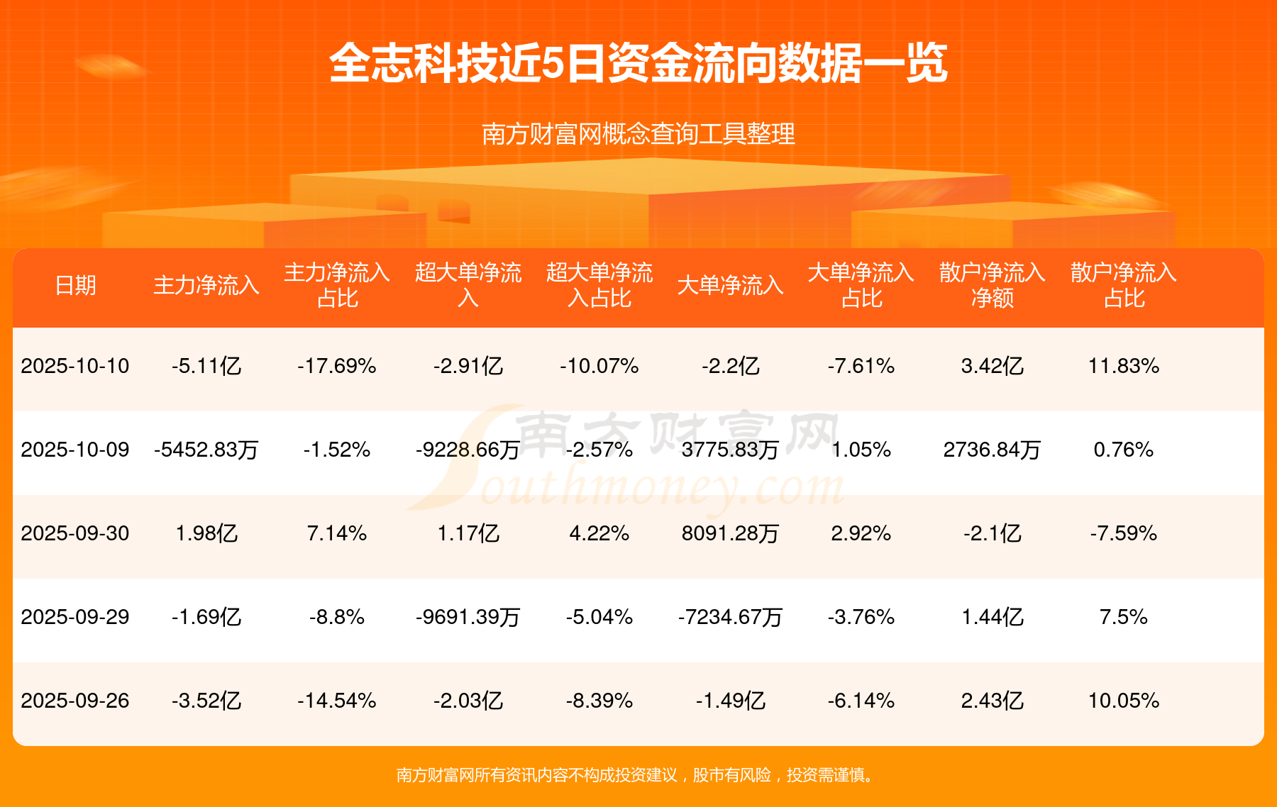 資金流向數(shù)據(jù)方面,10月10日主力資金凈流流出5.11億元,超大單資金凈流出2.91億元,大單資金凈流出2.2億元,散戶資金凈流入3.42億元。