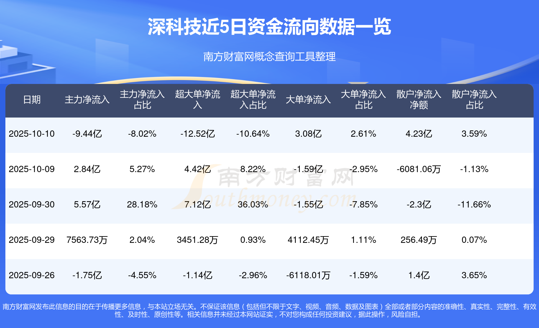 10月10日消息,資金凈流出9.44億元,超大單凈流出12.52億元,成交金額51.23億元。