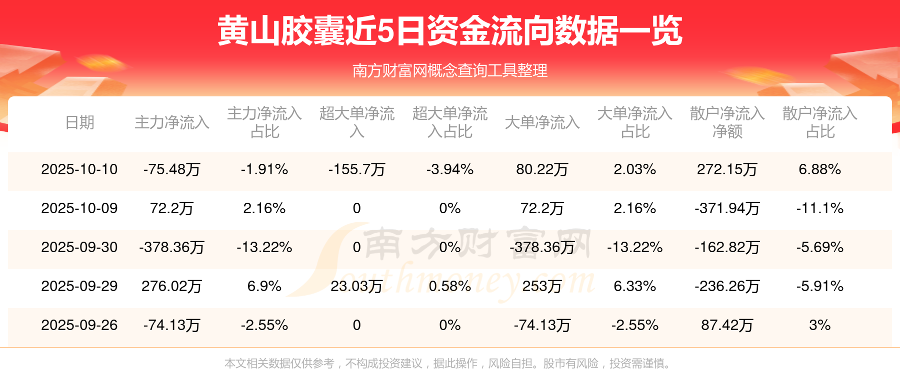 近5日資金流向一覽見下表: