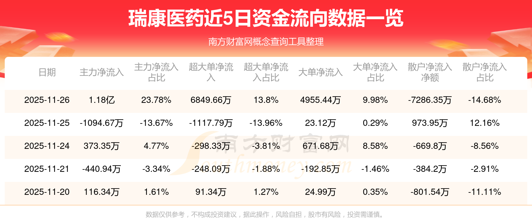 11月26日消息,瑞康醫(yī)藥主力凈流入1.18億元,超大單凈流入6849.66萬元,散戶凈流出7286.35萬元。