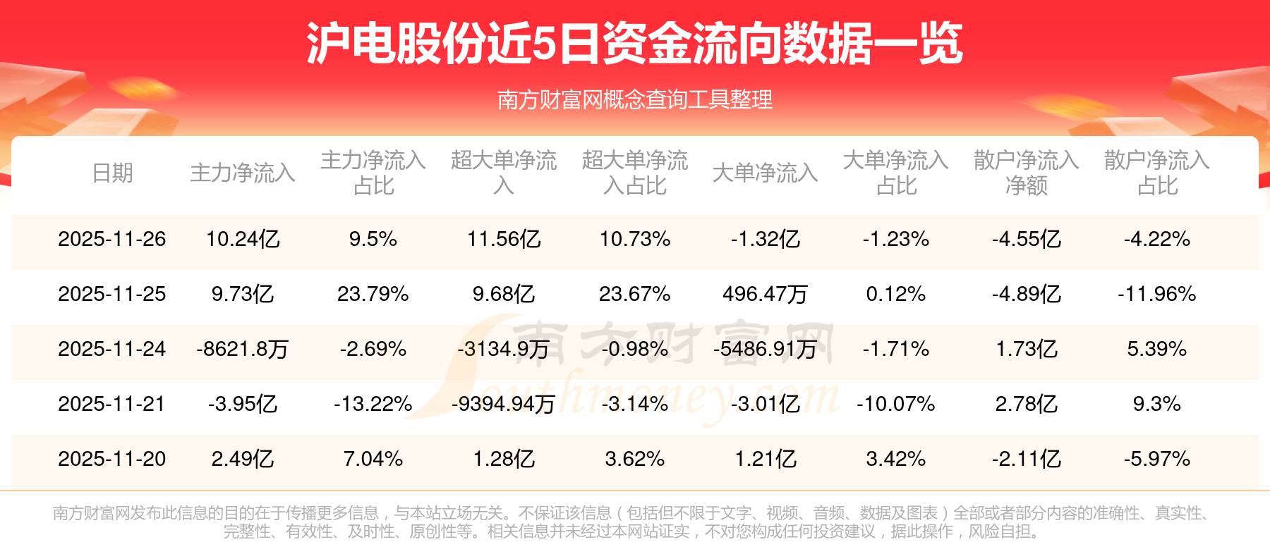 11月26日消息,滬電股份11月26日主力凈流入10.24億元,超大單凈流入11.56億元,大單凈流出1.32億元,散戶凈流出4.55億元。