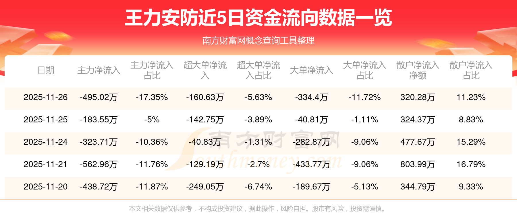 近5日資金流向一覽見下表: