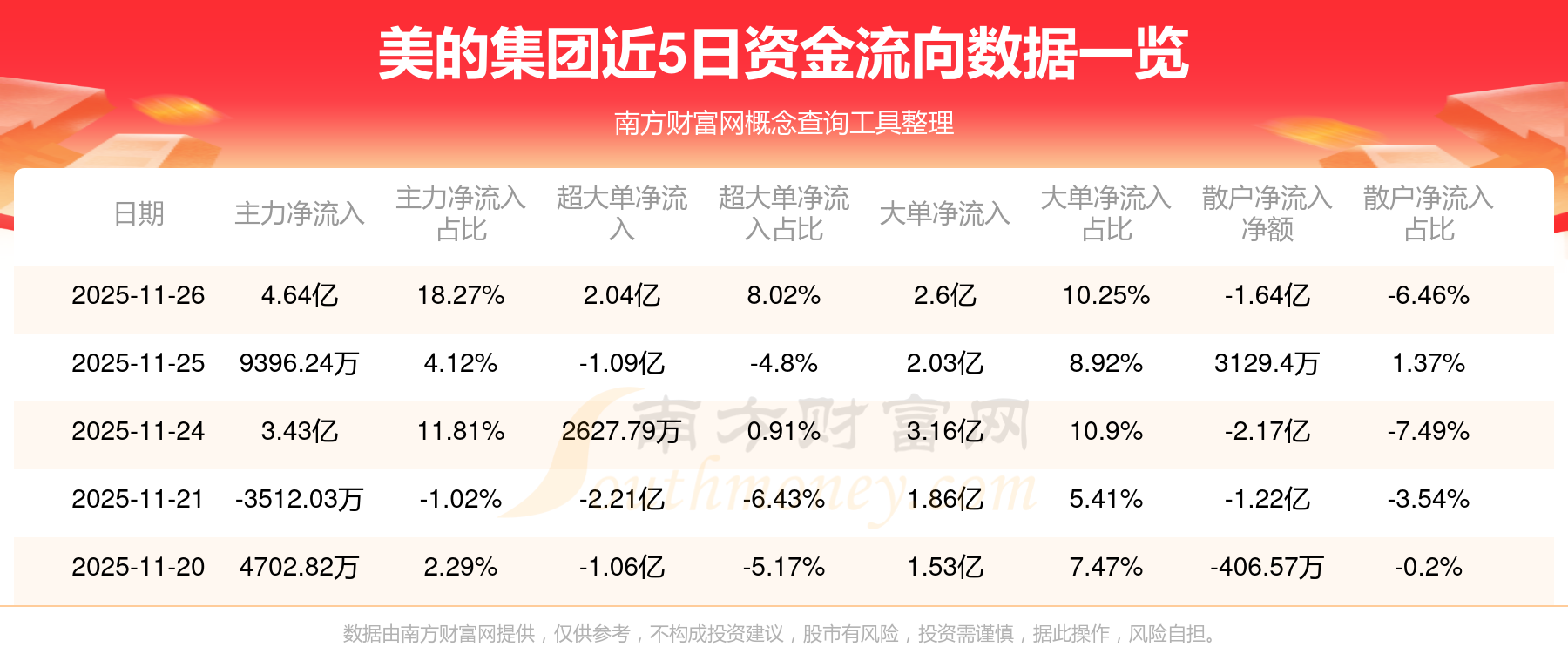 近5日資金流向一覽見(jiàn)下表: