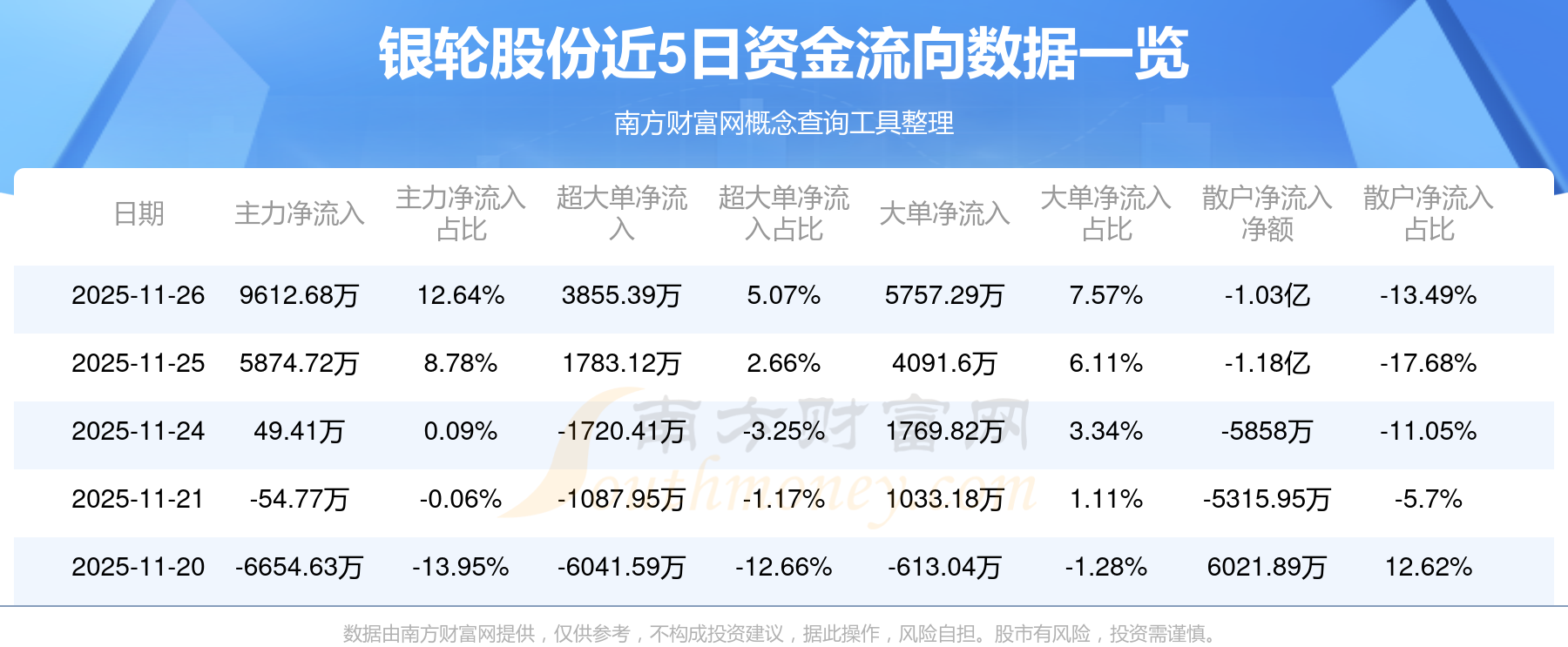 近5日資金流向一覽見下表: