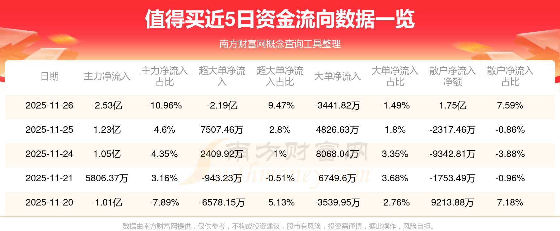 近5日資金流向一覽見下表: