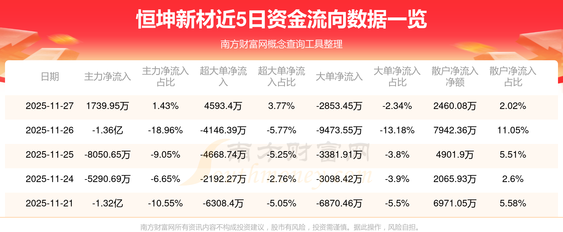 資金流向數(shù)據(jù)方面,11月27日主力資金凈流流入1739.95萬元,超大單資金凈流入4593.4萬元,大單資金凈流出2853.45萬元,散戶資金凈流入2460.08萬元。