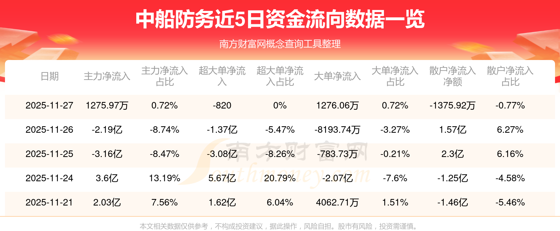 11月27日消息,中船防務(wù)主力資金凈流入1275.97萬(wàn)元,超大單資金凈流出820元,散戶資金凈流出1375.92萬(wàn)元。