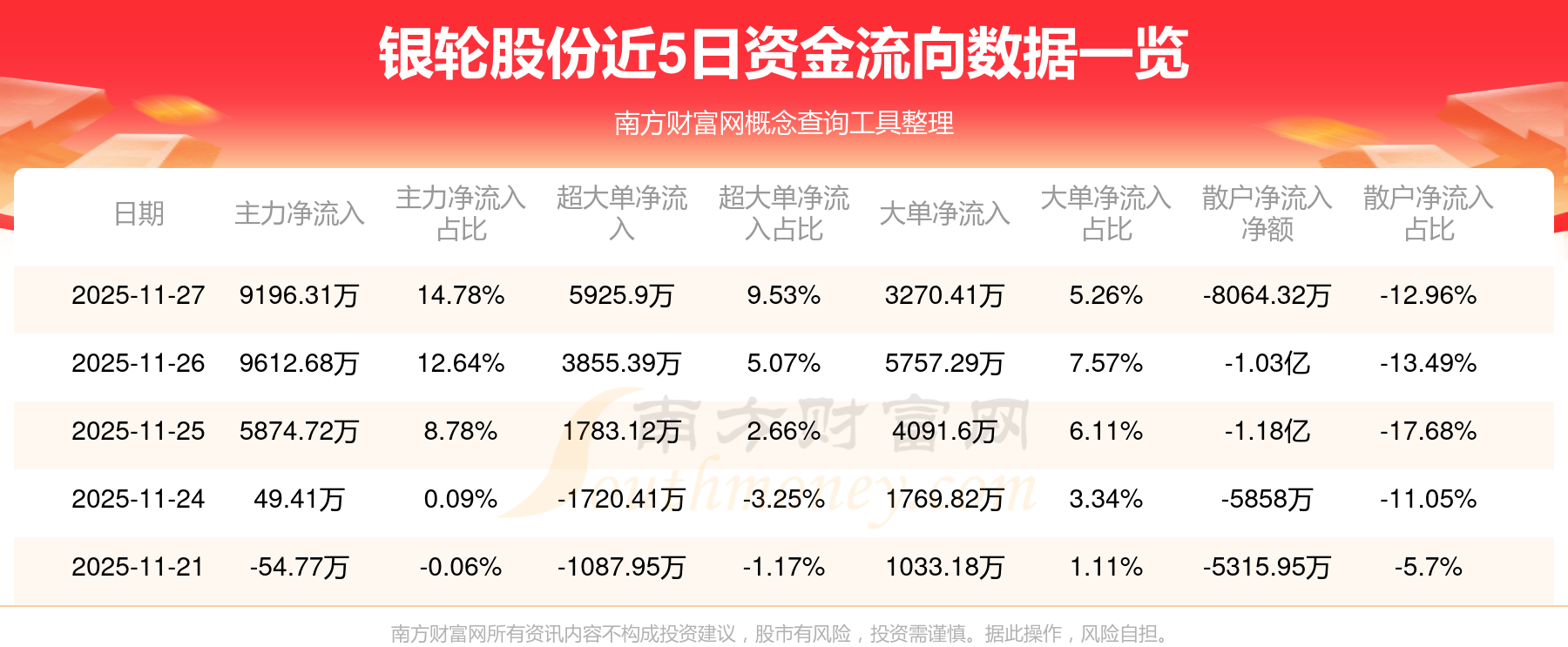 11月27日消息,銀輪股份資金凈流入9196.31萬元,超大單資金凈流入5925.9萬元,換手率2.28%,成交金額6.22億元。