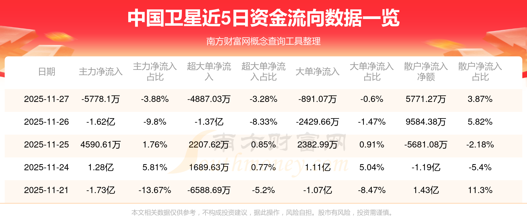 近5日資金流向一覽見下表: