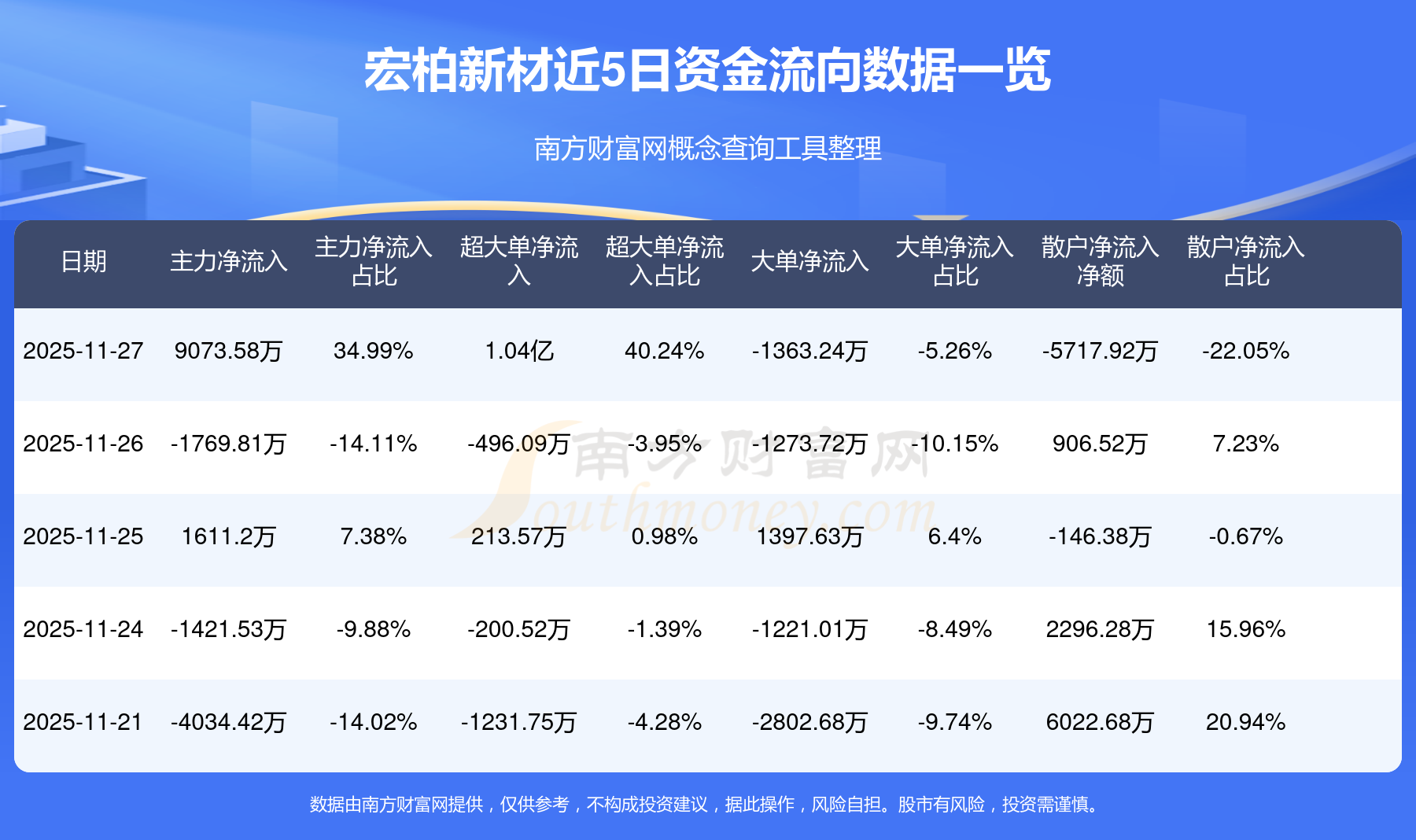 11月27日該股主力資金凈流入9073.58萬元,超大單資金凈流入1.04億元,大單資金凈流出1363.24萬元,中單資金凈流出3355.66萬元,散戶資金凈流出5717.92萬元。
