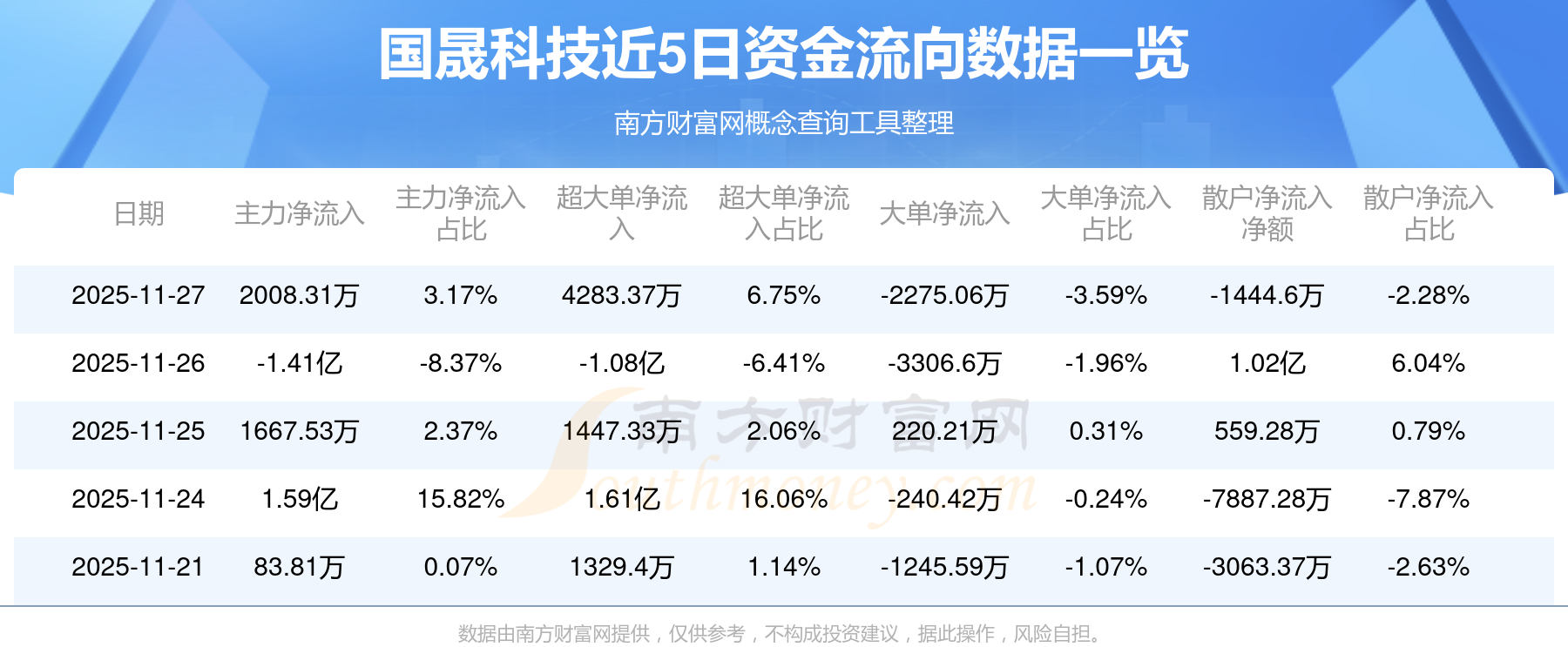 11月27日該股主力資金凈流入2008.31萬元,超大單資金凈流入4283.37萬元,大單資金凈流出2275.06萬元,中單資金凈流出563.71萬元,散戶資金凈流出1444.6萬元。