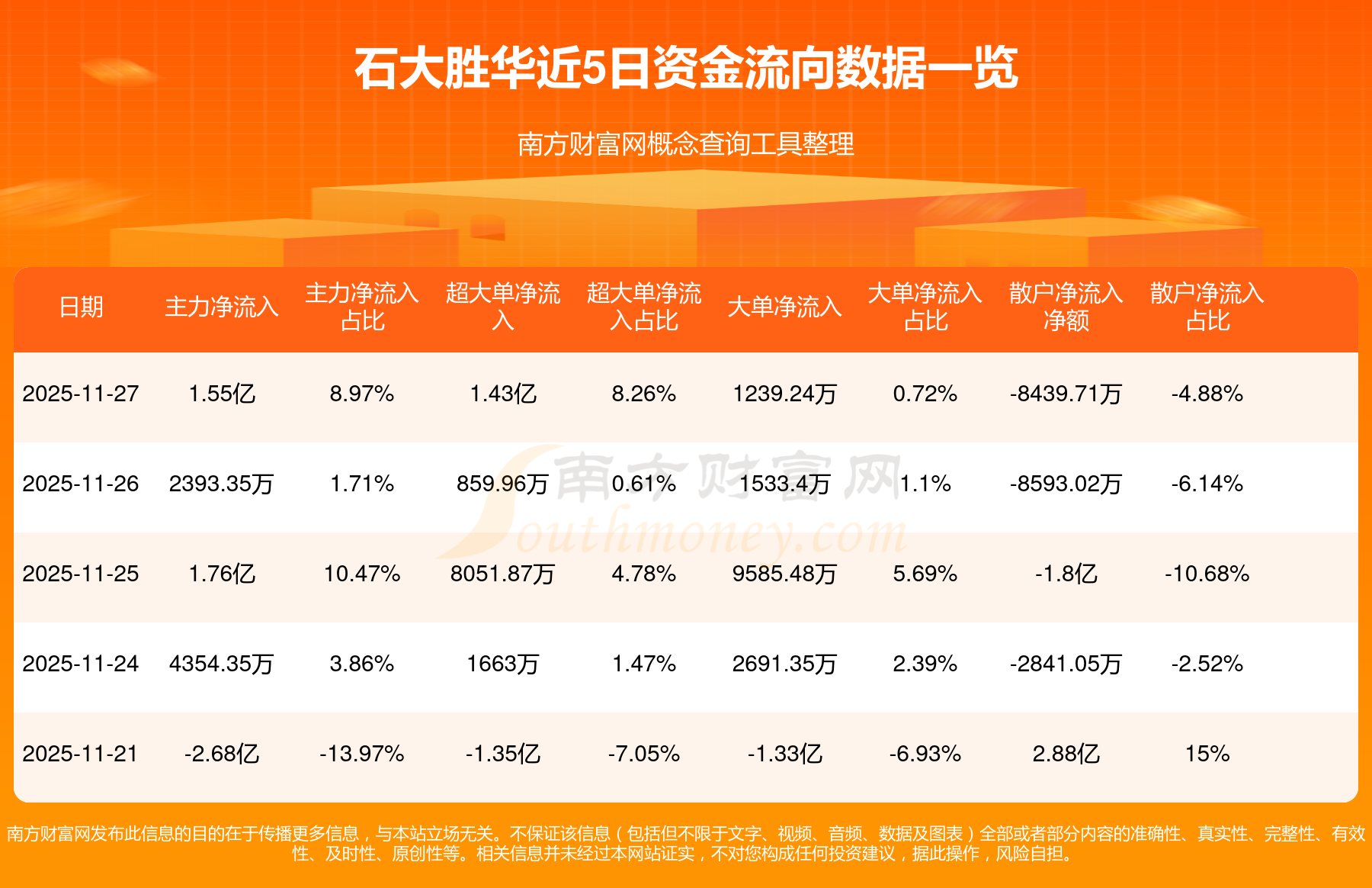 11月27日該股主力凈流入1.55億元,超大單凈流入1.43億元,大單凈流入1239.24萬元,中單凈流出7067.03萬元,散戶凈流出8439.71萬元。