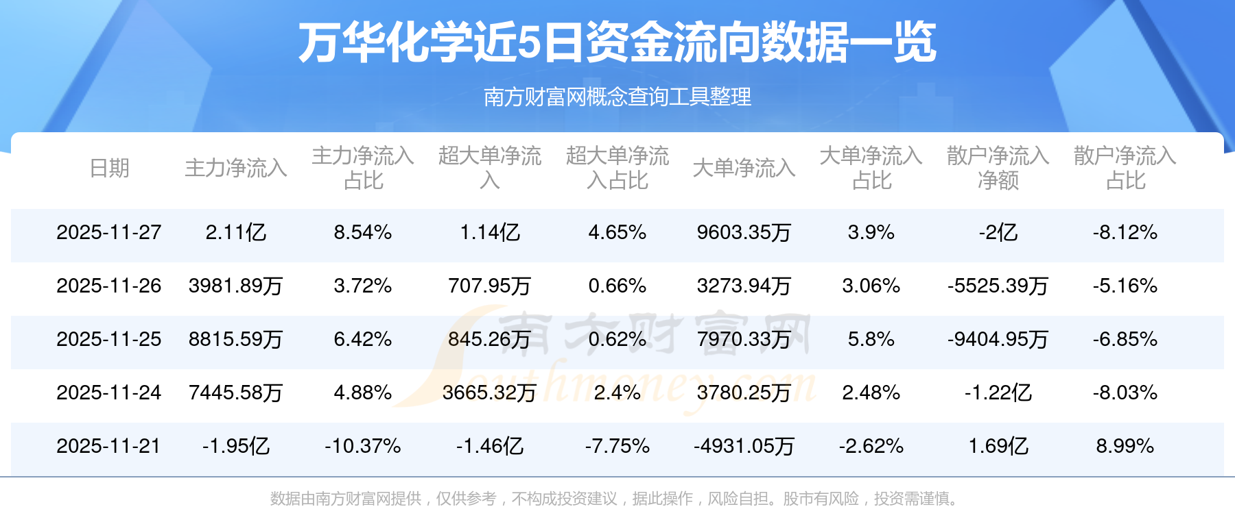 11月25日消息,萬華化學5日內股價上漲4.83%,最新報65.900元,成交量3780.89萬手,總市值為2062.98億元。