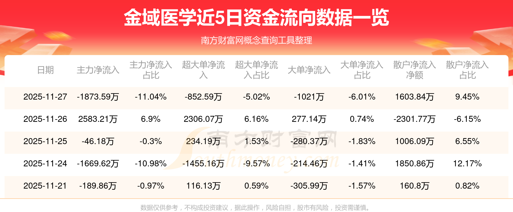 近5日資金流向一覽見下表: