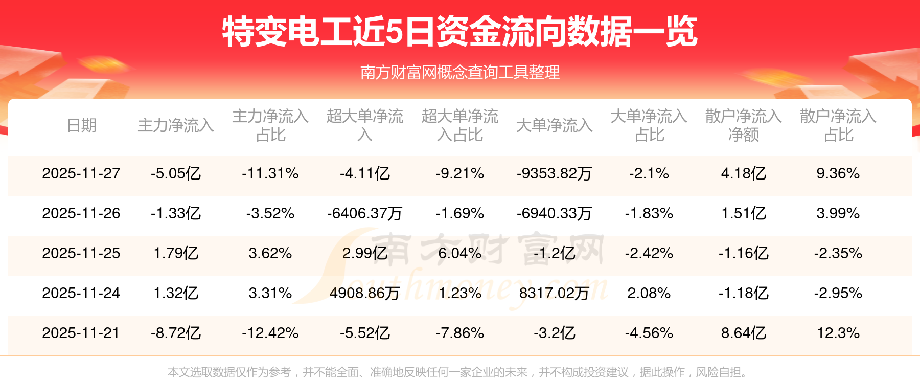 近5日資金流向一覽見下表: