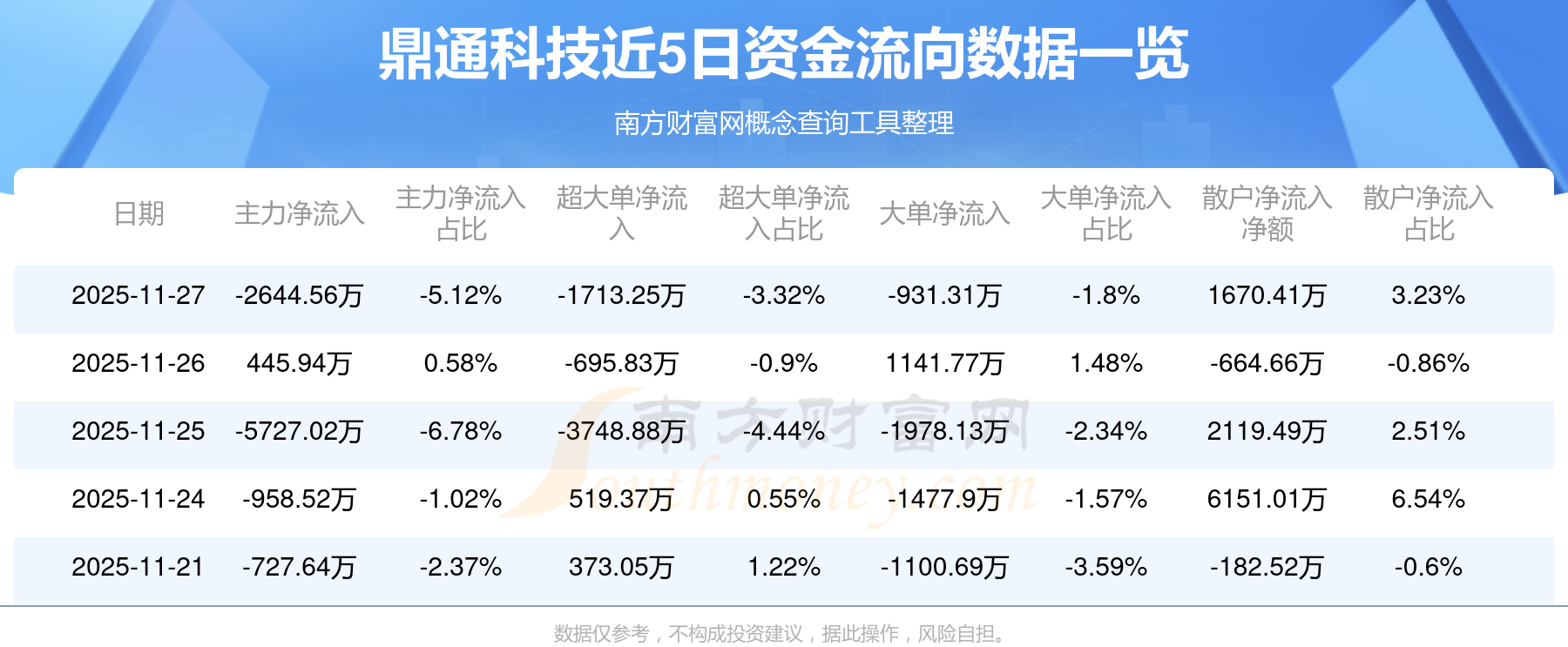 11月27日消息,鼎通科技資金凈流出2644.56萬(wàn)元,超大單資金凈流出1713.25萬(wàn)元,換手率3.82%,成交金額5.17億元。