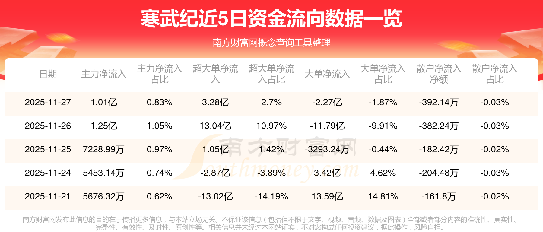 11月27日消息,寒武紀(jì)-U主力凈流入1.01億元,超大單凈流入3.28億元,散戶凈流出392.14萬元。