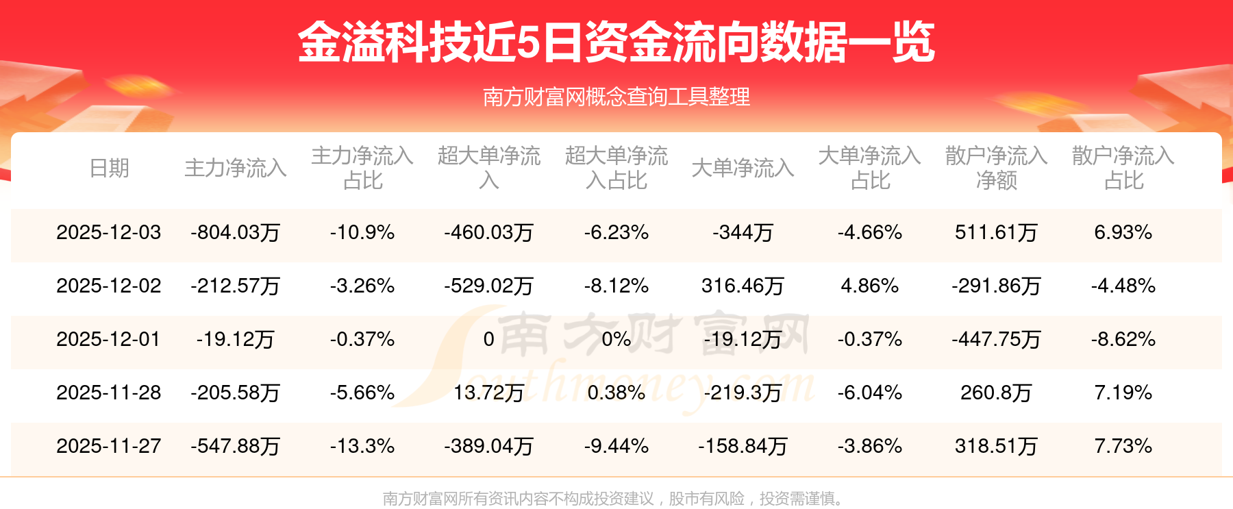 資金流向數(shù)據(jù)方面,12月3日主力資金凈流流出804.03萬元,超大單資金凈流出460.03萬元,大單資金凈流出344萬元,散戶資金凈流入511.61萬元。