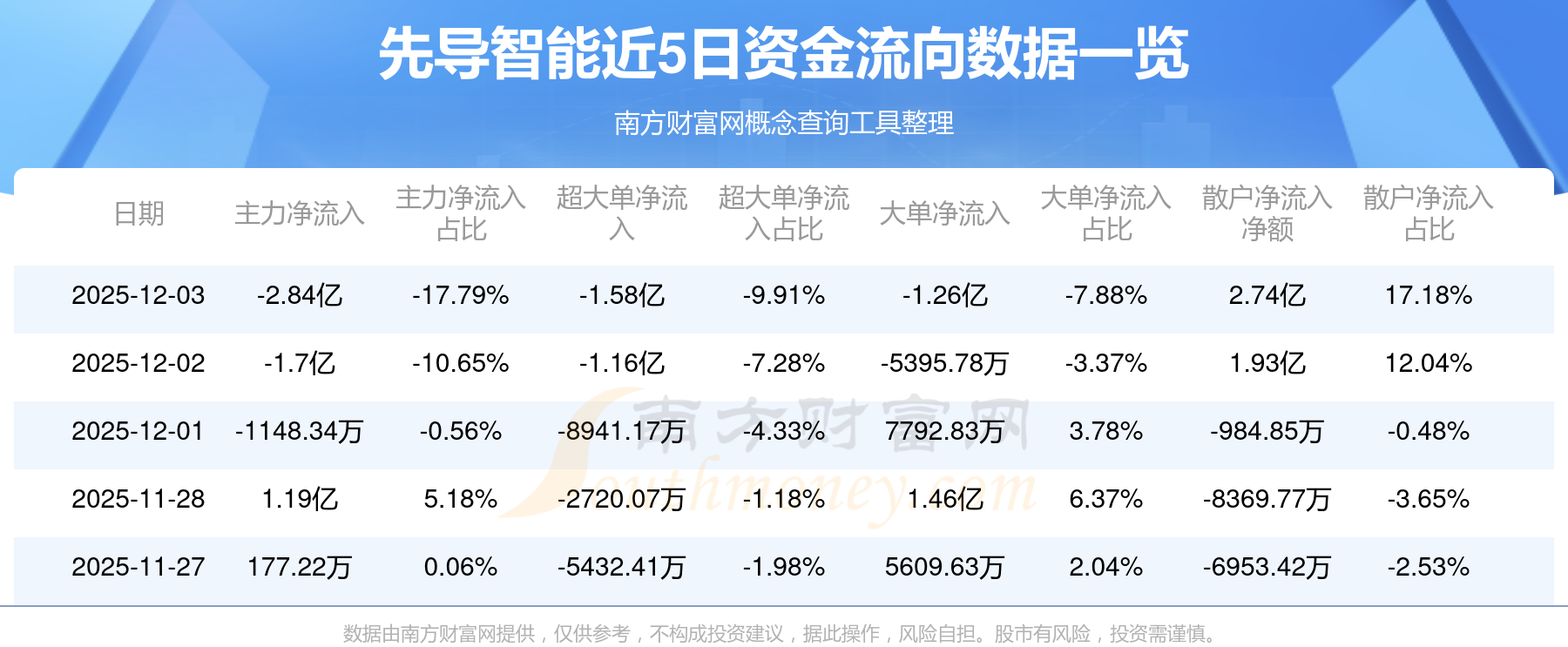 近5日資金流向一覽見下表: