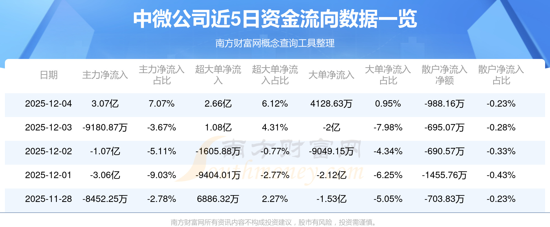 12月4日消息,中微公司資金凈流入3.07億元,超大單凈流入2.66億元,換手率2.6%,成交金額43.43億元。