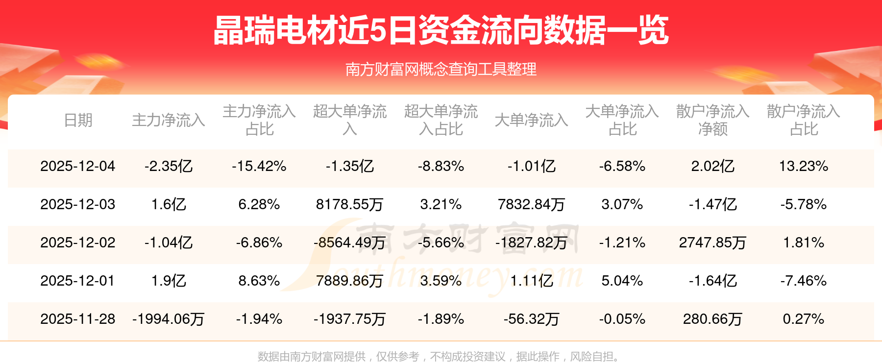 12月4日該股主力資金凈流出2.35億元,超大單資金凈流出1.35億元,大單資金凈流出1.01億元,中單資金凈流入3342.53萬元,散戶資金凈流入2.02億元。
