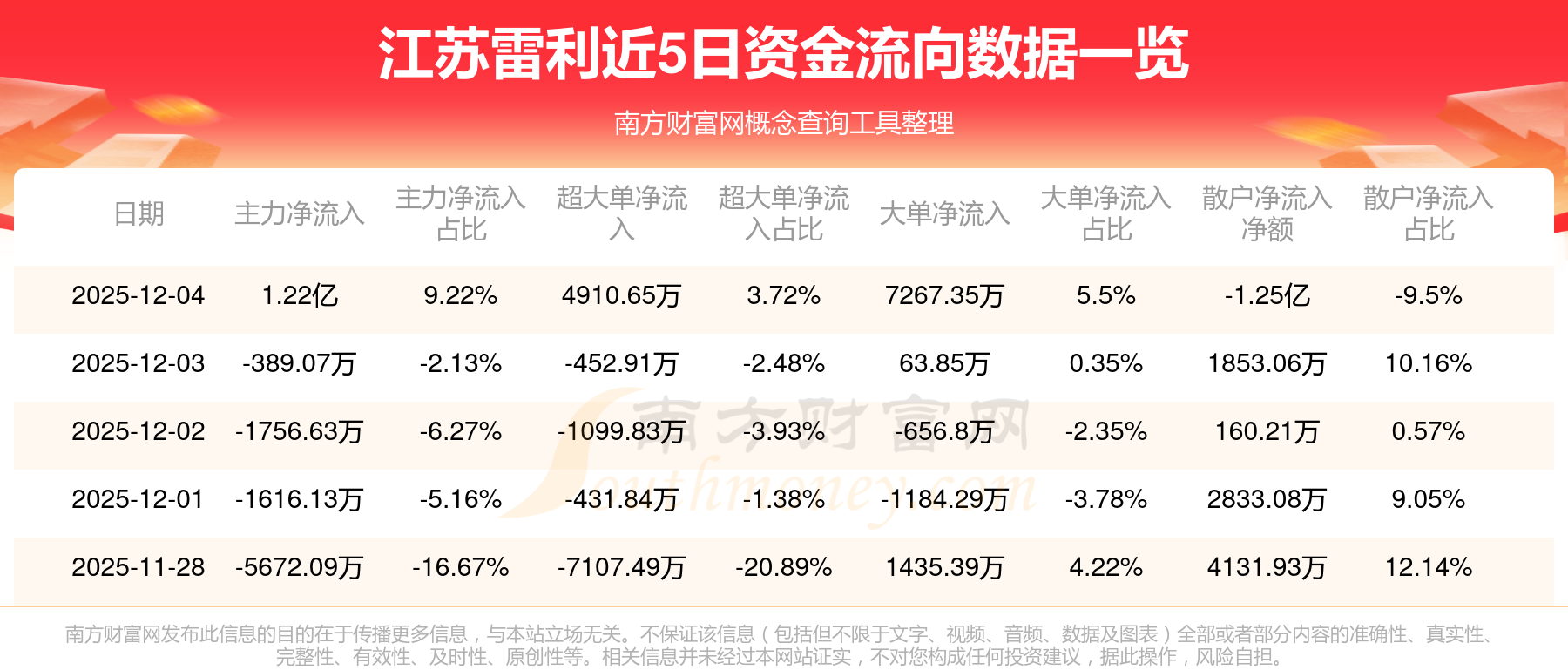 12月4日資金凈流入1.22億元,超大單凈流入4910.65萬(wàn)元,換手率5.96%,成交金額13.21億元。