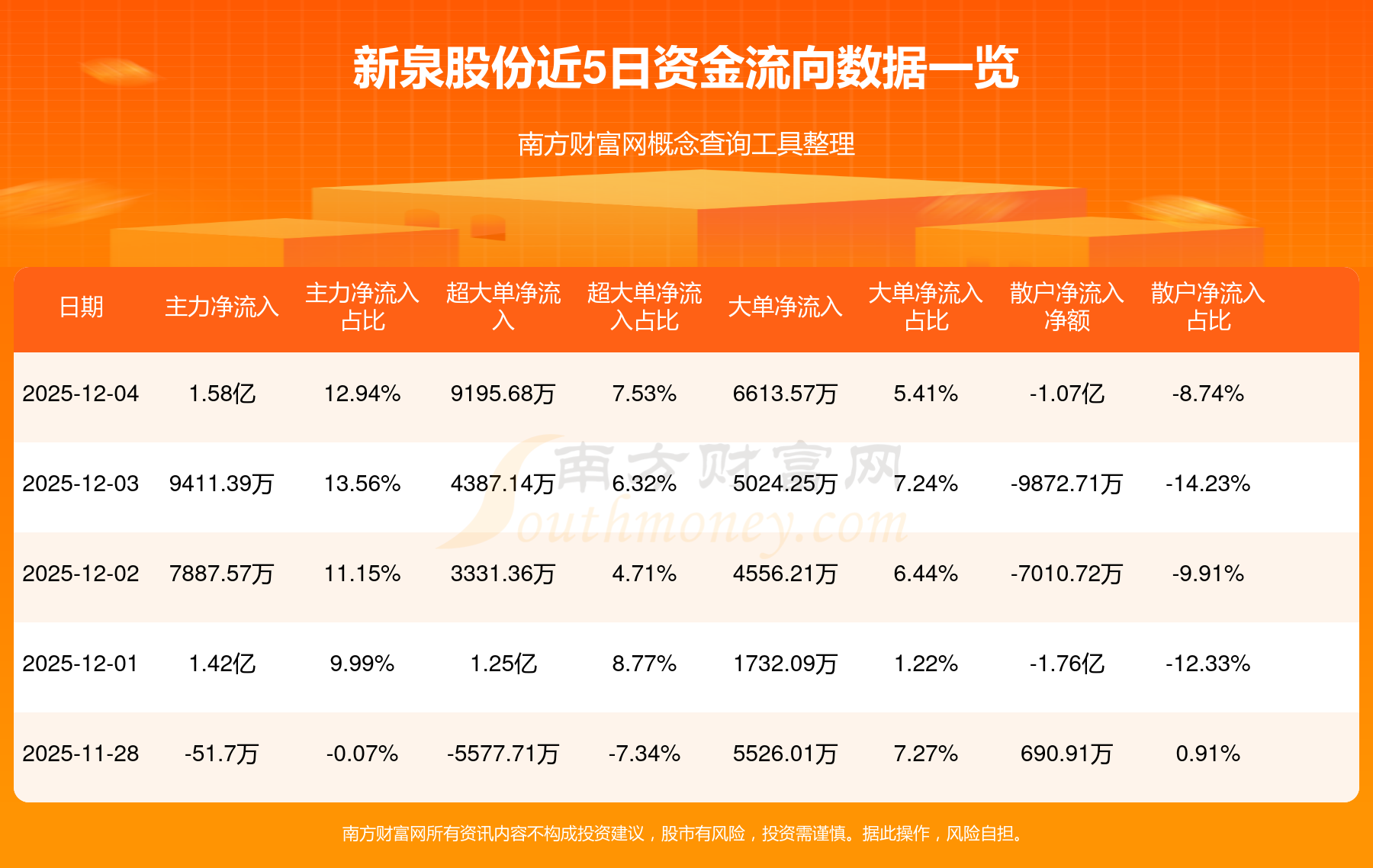 資金流向數(shù)據(jù)方面,12月4日主力資金凈流流入1.58億元,超大單資金凈流入9195.68萬元,大單資金凈流入6613.57萬元,散戶資金凈流出1.07億元。