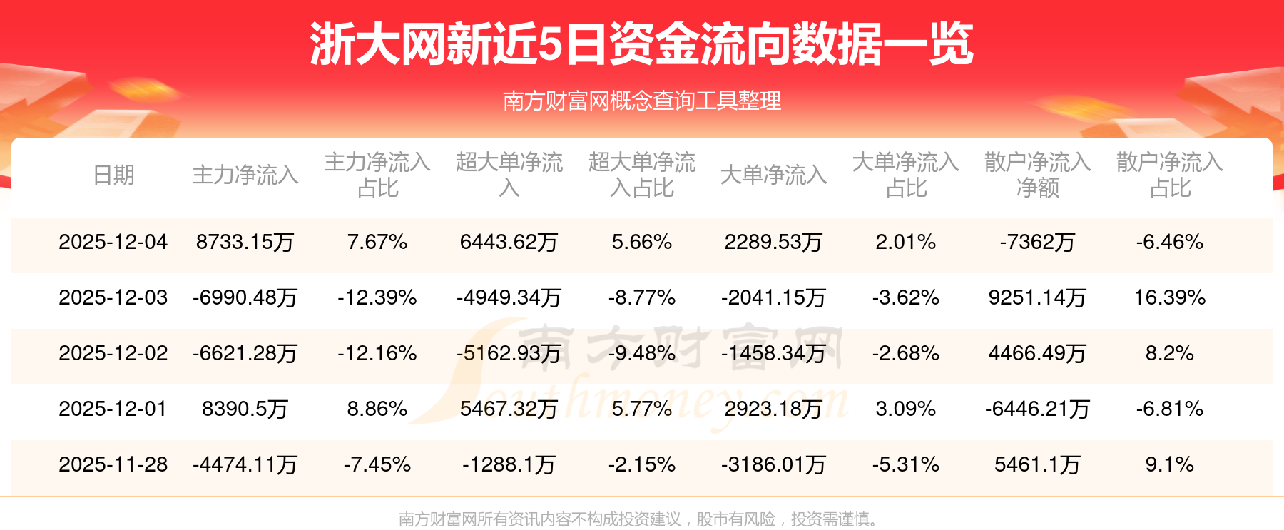 近5日資金流向一覽見下表: