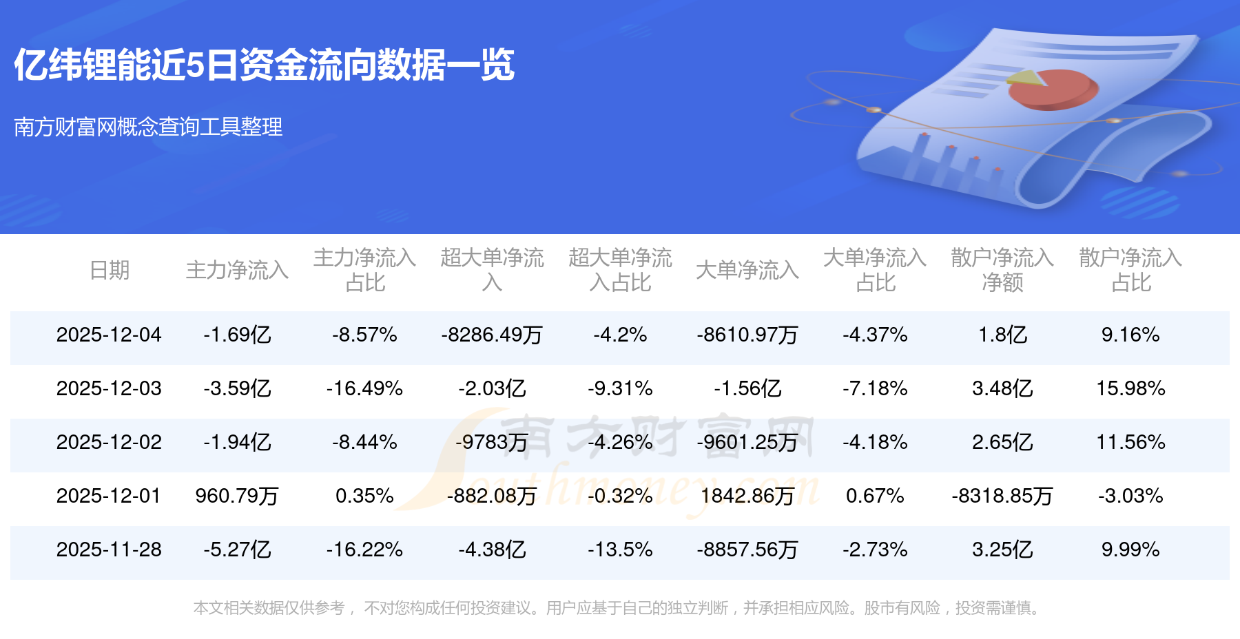 12月4日消息,億緯鋰能12月4日主力資金凈流出1.69億元,超大單資金凈流出8286.49萬(wàn)元,大單資金凈流出8610.97萬(wàn)元,散戶資金凈流入1.8億元。