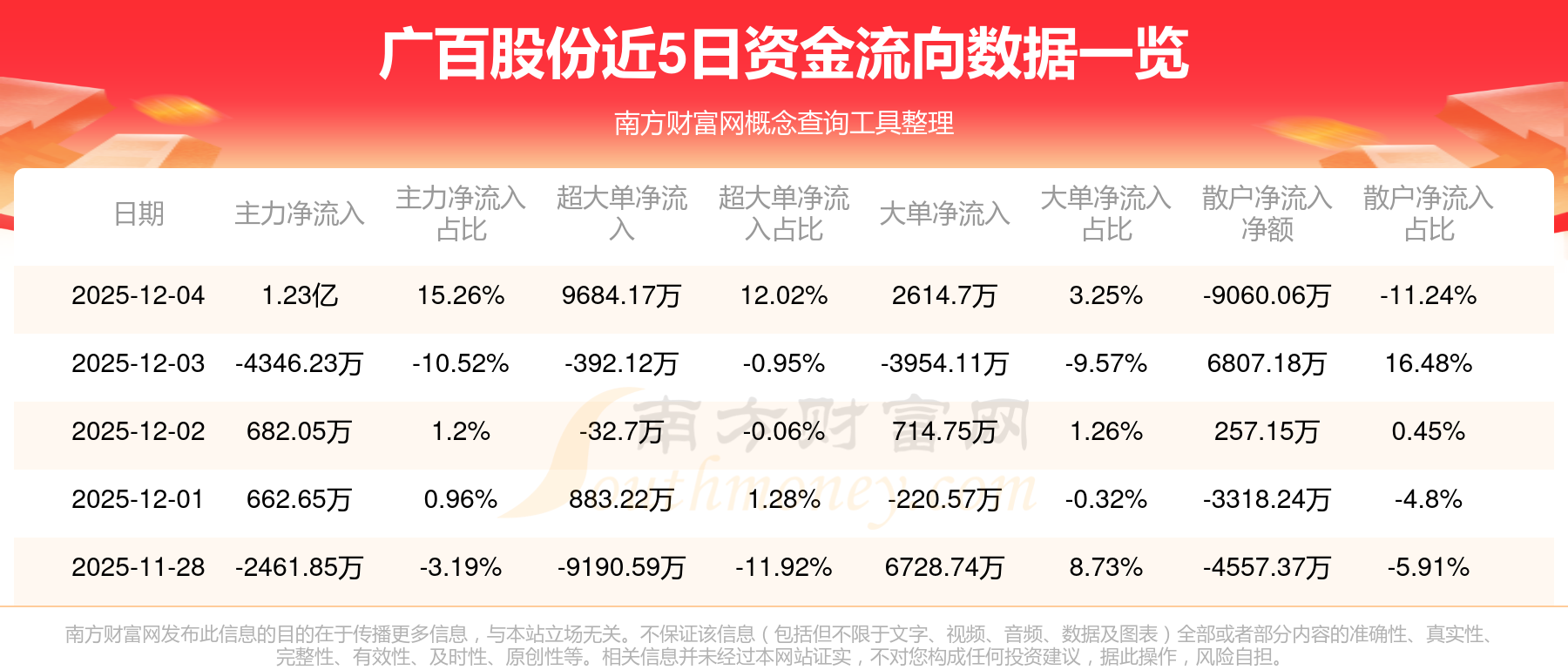 12月4日消息,廣百股份12月4日主力凈流入1.23億元,超大單凈流入9684.17萬(wàn)元,大單凈流入2614.7萬(wàn)元,散戶凈流出9060.06萬(wàn)元。