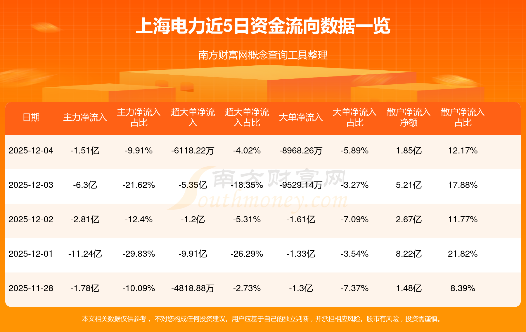 12月4日消息,上海電力主力資金凈流出1.51億元,超大單資金凈流出6118.22萬(wàn)元,散戶資金凈流入1.85億元。