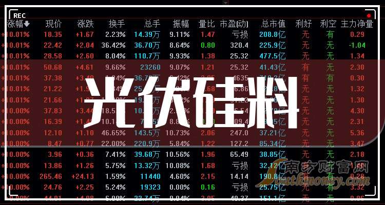 據(jù)南方財(cái)富網(wǎng)概念查詢工具數(shù)據(jù)顯示,光伏硅料概念股龍頭股有: