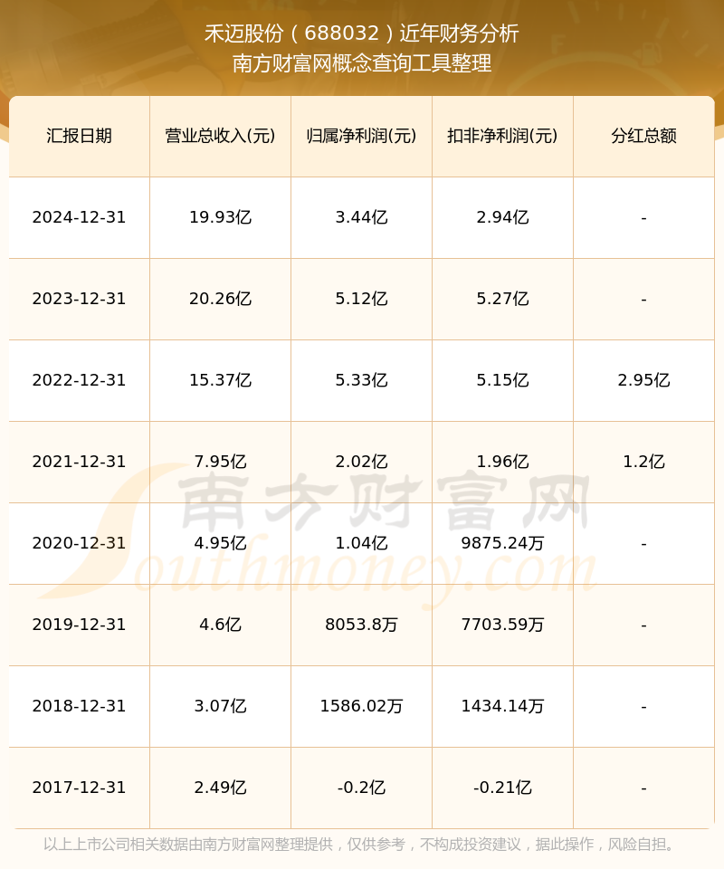 禾邁股份2024年總營(yíng)收19.93億,同比增長(zhǎng)-1.63%;凈利潤(rùn)3.44億,同比增長(zhǎng)-32.75%;銷售毛利率42.36%。