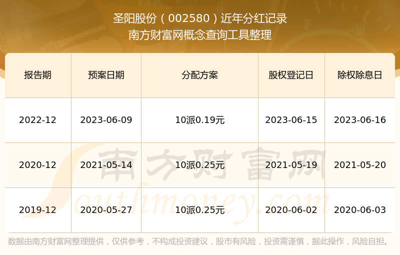 一、圣陽(yáng)股份(002580)股票分紅記錄