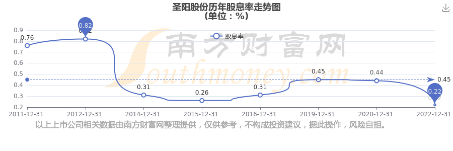 近年圣陽(yáng)股份年度股息率走勢(shì)如下圖: