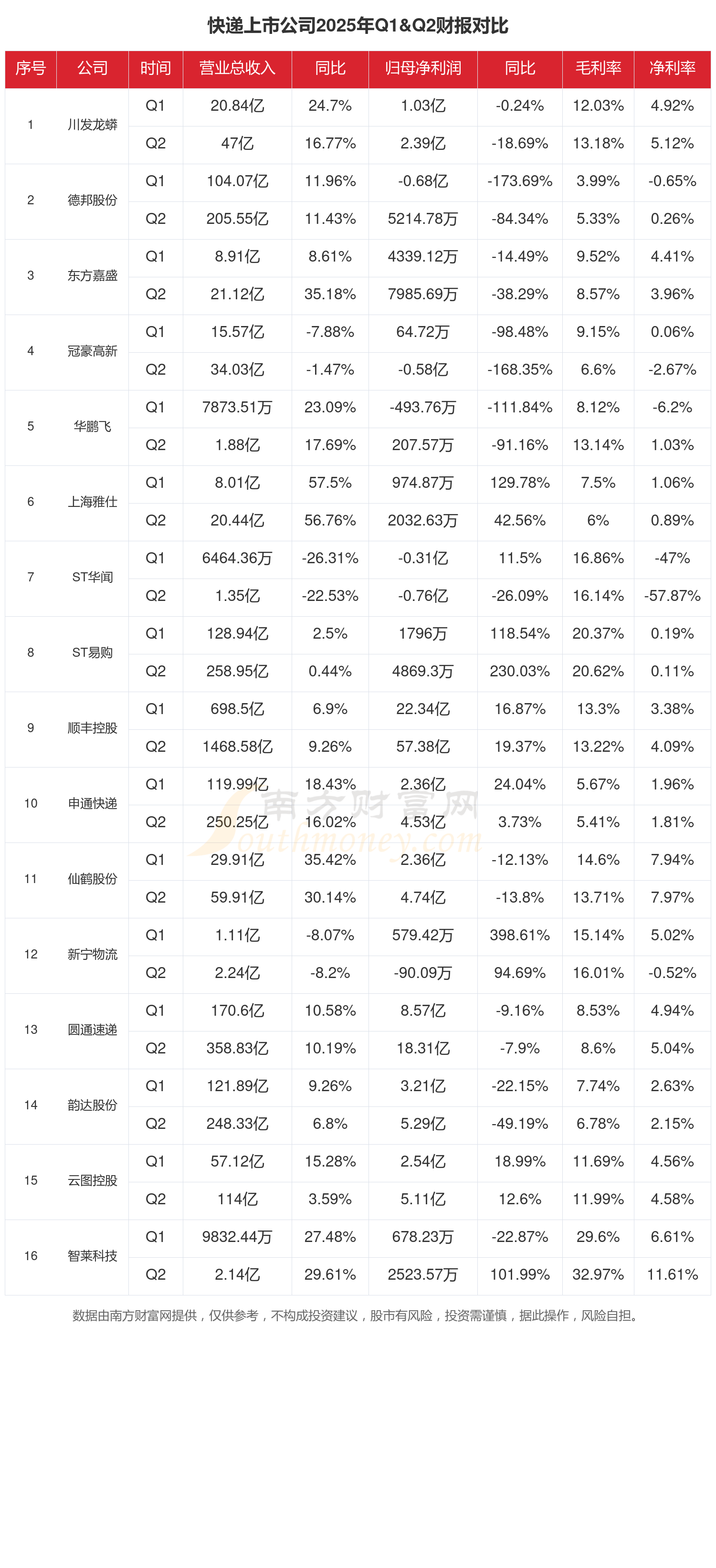 申通快遞(002468):申通快遞2025年第二季度營(yíng)收同比增長(zhǎng)13.89%至130.26億元;凈利潤(rùn)為2.17億,同比增長(zhǎng)-11.94%,毛利潤(rùn)為6.74億,毛利率5.17%。