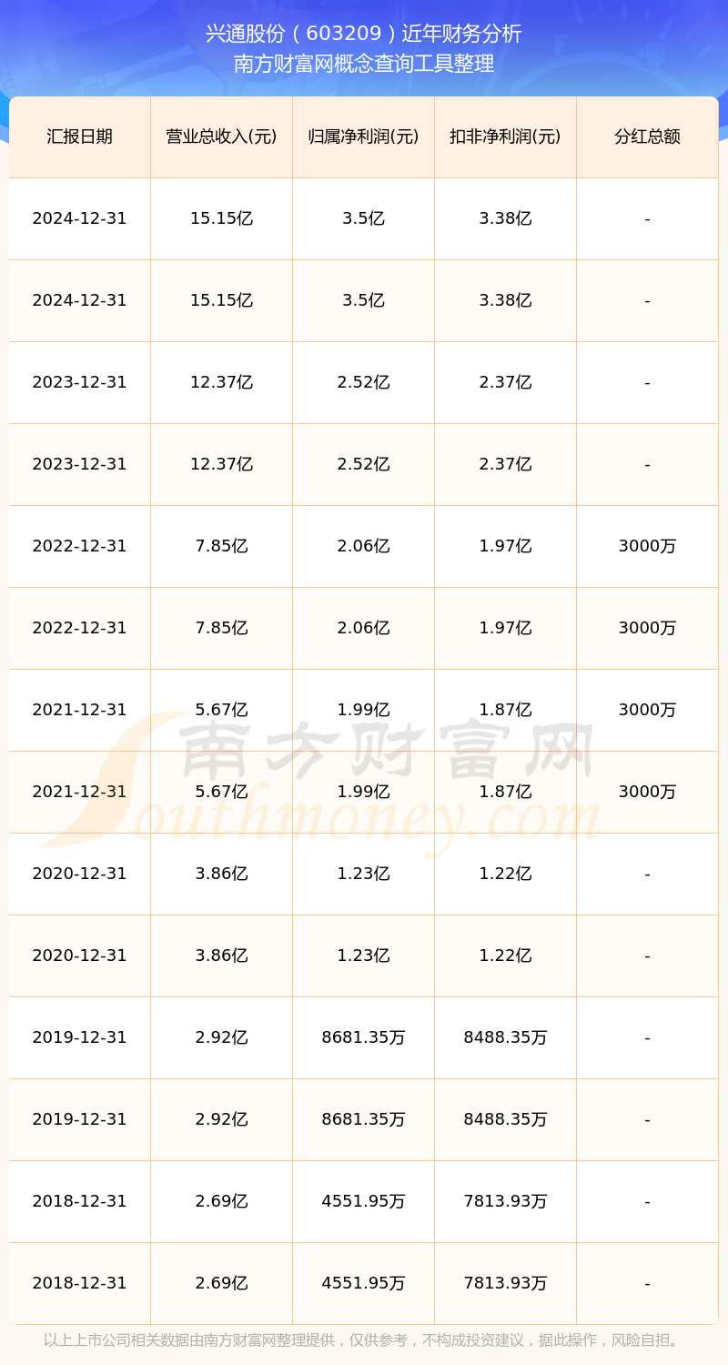 2024年興通股份總營收15.15億,同比增長22.43%;凈利潤3.5億,同比增長38.95%;銷售毛利率36%。