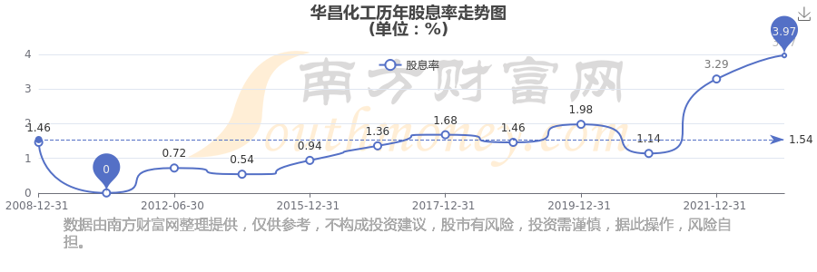 近年華昌化工年度股息率走勢(shì)如下圖: