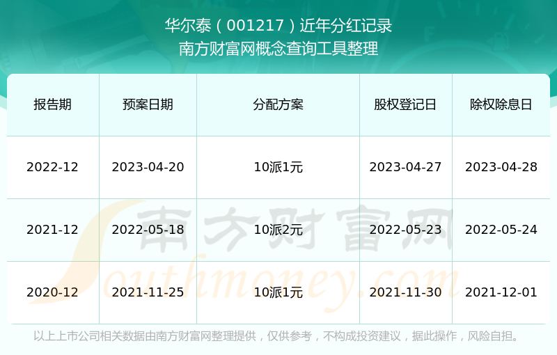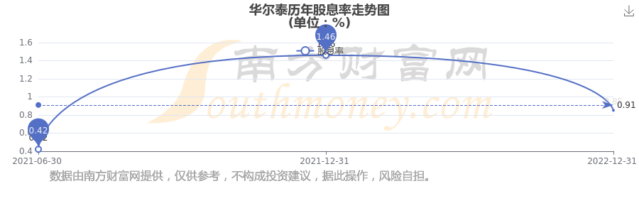 華爾泰最新一次公布的分紅方案為10派1元。本次權(quán)益分派股權(quán)登記日為2023年4月27日,除權(quán)除息日為2023年4月28日,派息日為2023年4月28日。