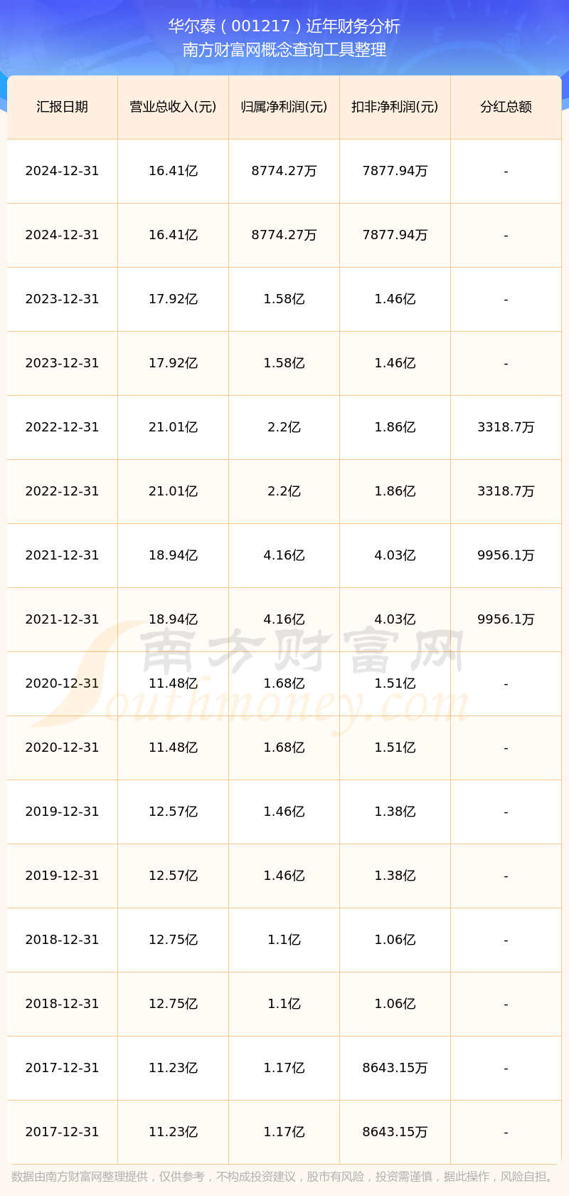 2024年報(bào)顯示,華爾泰實(shí)現(xiàn)營收16.41億,同比增長-8.42%;凈利潤8774.27萬,同比增長-44.56%;毛利率13.59%。
