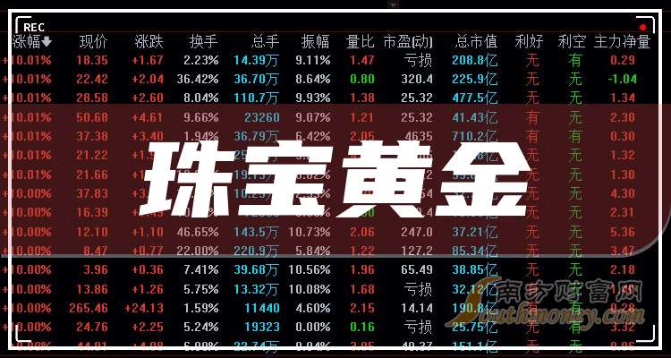 據(jù)南方財富網(wǎng)概念查詢工具數(shù)據(jù)顯示,相關(guān)珠寶黃金企業(yè)有: