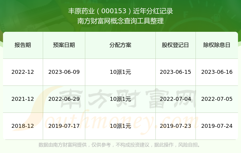 豐原藥業(yè)最新一次公布的分紅方案為10派1元。本次權(quán)益分派股權(quán)登記日為2023年6月15日,除權(quán)除息日為2023年6月16日,派息日為2023年6月16日。