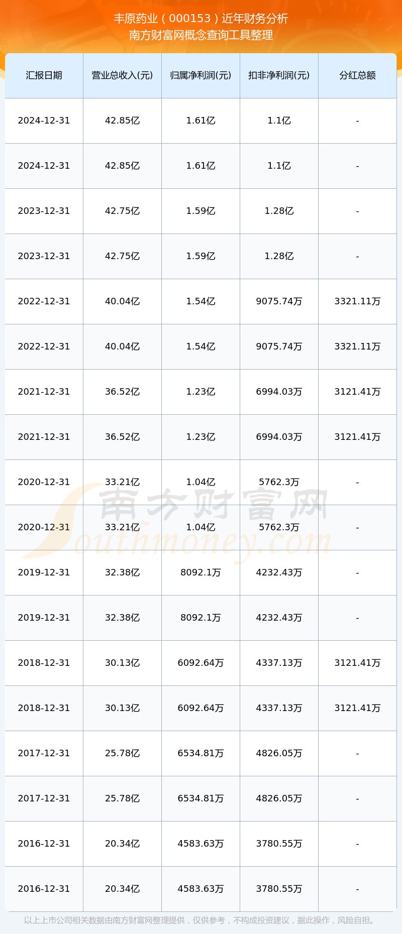 近年豐原藥業(yè)分紅派息情況如下表所示: