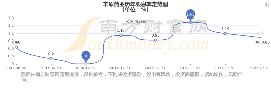 豐原藥業(yè)歷年股息率走勢(shì)如下圖: