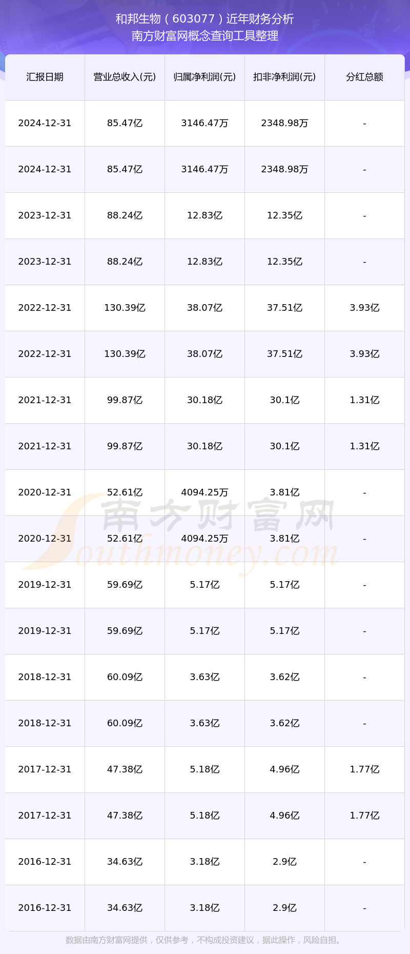 和邦生物公司2024年實(shí)現(xiàn)營(yíng)收85.47億元,凈利潤(rùn)3146.47萬元,毛利率7.8%。
